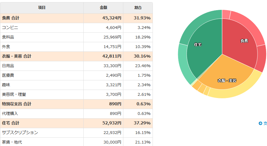 一方、食費と衣服・美容は、月ごとの判断によって増減しやすい支出になります。