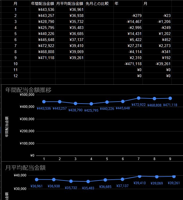 年間配当金と月平均配当金の推移を改めて確認してみました。