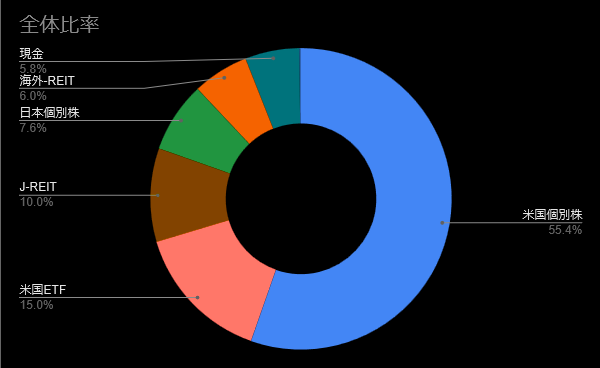 特に米国ETFの割合が多いため、円高や円安の時期によって数字が前後することがあります。