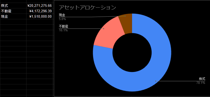 現状の総資産を改めて見直すと、株式の比率は78.1%です。